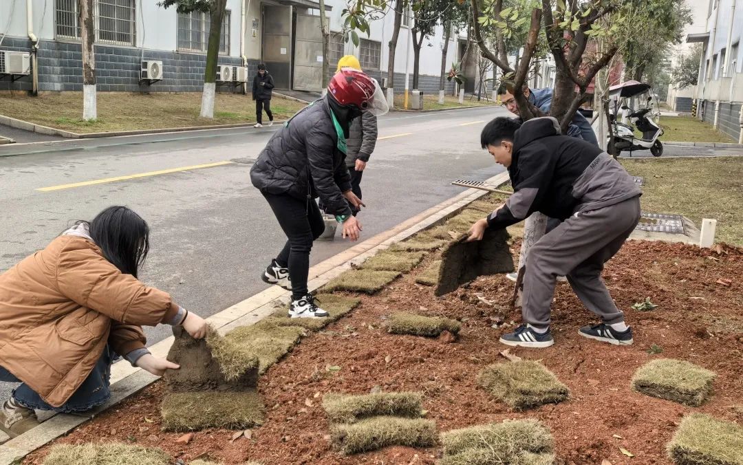 子公司金馳能源團委?踐行“綠水青山就是金山銀山”理念,組織青年在園區內開展種植樹苗、鋪種草皮等志愿服務行動,團員青年們揮鍬挖坑、扶苗培土、提桶澆水,種植樟樹苗100余棵,為園區增添一抹新綠。職能部門聯合團支部也在園區開展了園區衛生清理等志愿服務活動。